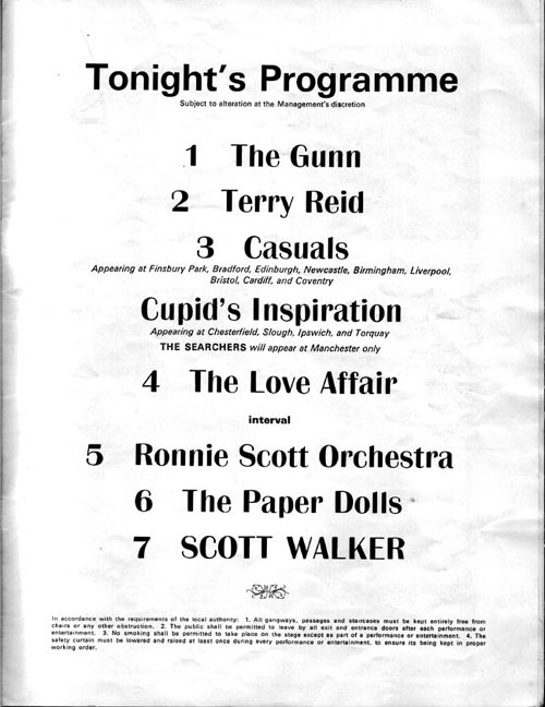 Listing taken from the Scott Walker programme